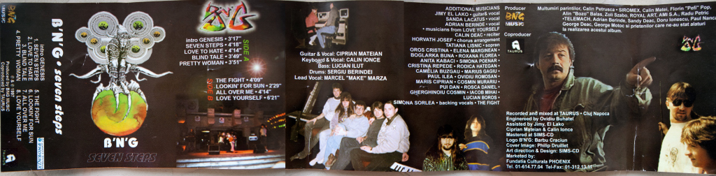Native hometown Baia Mare rock band BMG (there’s a whole story on why the BMG band ended as B’N’G on the cover) worked a few good years to record and get this one out, around 1998 if I remember well. I spent countless hours with the band members at the radio station where I worked in Baia Mare (Radio Galaxia), at their rehearsal room, backstage at their concerts and in countless parties.(detail from above) My third time being named on a rock record: Baia Mare, Romania band BMG’s only album. Still in the 1990’s.