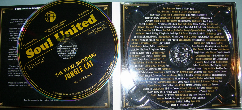 Fast forward to 2013, modern funk Seattle band The Staxx Brothers lists my name on their 3rd album. Apparently playing them in my podcast and travelling to Seattle to see them live got my name on it: thanks, friends!The fourth time my name goes on a rock record: Seattle modern funk band The Staxx Brothers thanked me on their 2011 album, Jungle Cat.