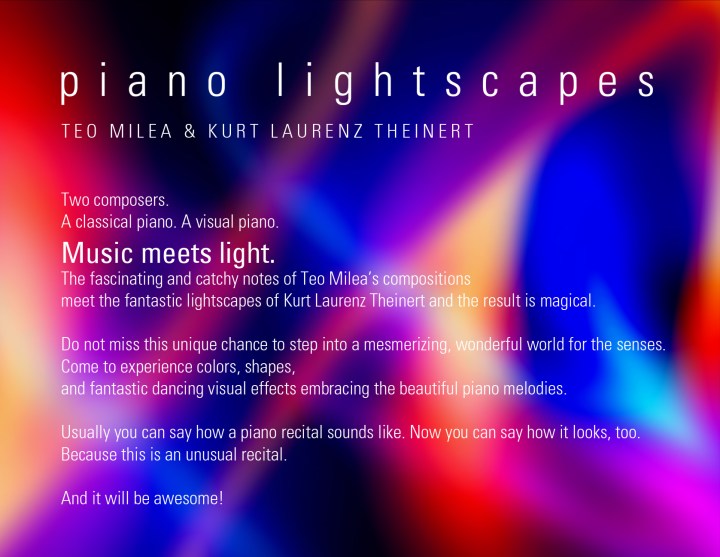 The Grand Piano vs Visual Piano showdown between CBC Searchlight award winner pianist Teo Milea and German superstar light-artist Kurt Laurenz Theinert is a re-edit of a wildly successful concert back in 2014, in a similarly special setting, the Theresia Bastion in Timisoara, Romania.