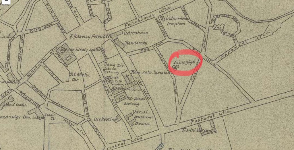 O hartă militară din 1940 arată locația sinagogii din Baia Mare, actualmente pe strada Someșului.