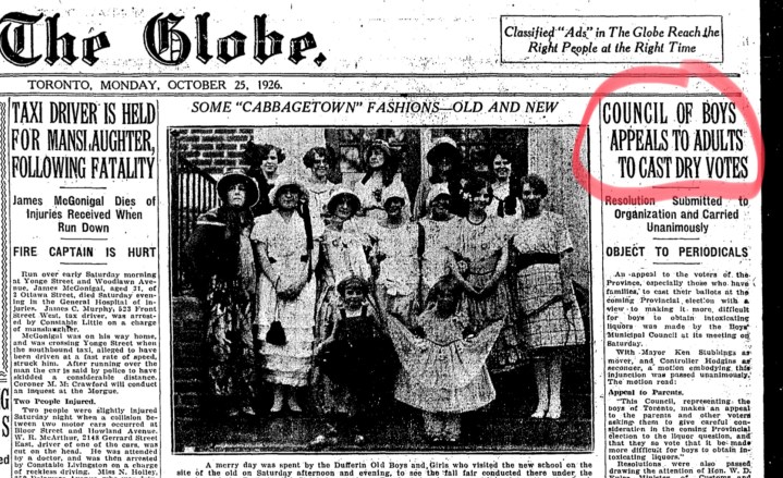 Ontario was a “bone-dry” land in October 1926. The province was getting ready for its 17th Election, scheduled on 1 December. The prohibition was the main electoral issue, the “giggle water” drought having started back in 1916 with the Ontario Temperance Act. In the end, the Ontario Conservatives won a new mandate campaigning on ending the prohibition and instead having the government control liquor sales. As a result, the LCBO was created in 1927, thus concluding 11 years of prohibition.