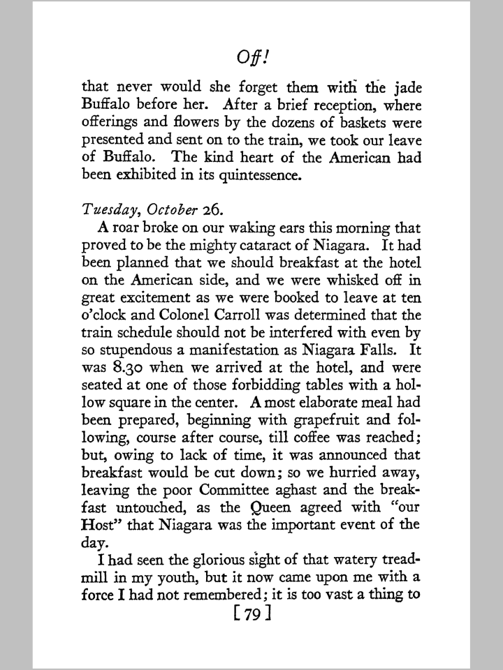 The royal party arrived on Monday, 18 October 1926 in New York by transatlantic boat and made it to Buffalo a week later, at 8 PM. The next morning…