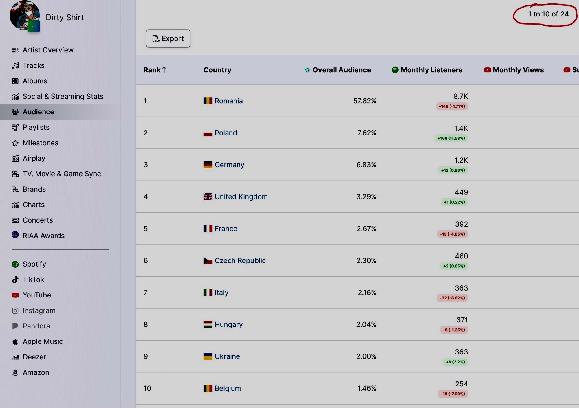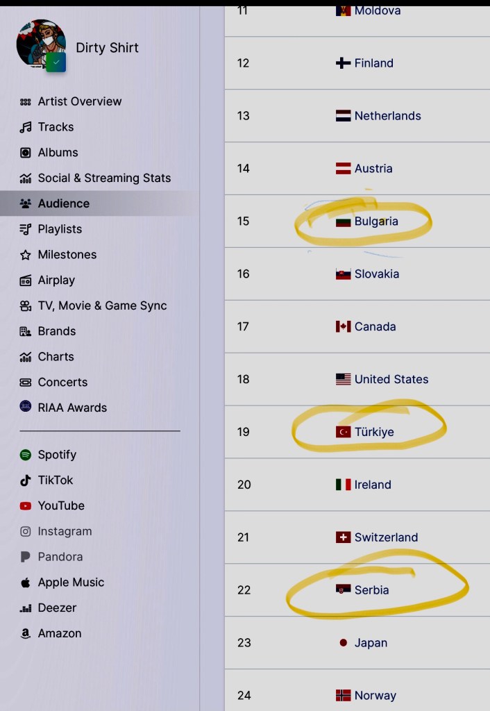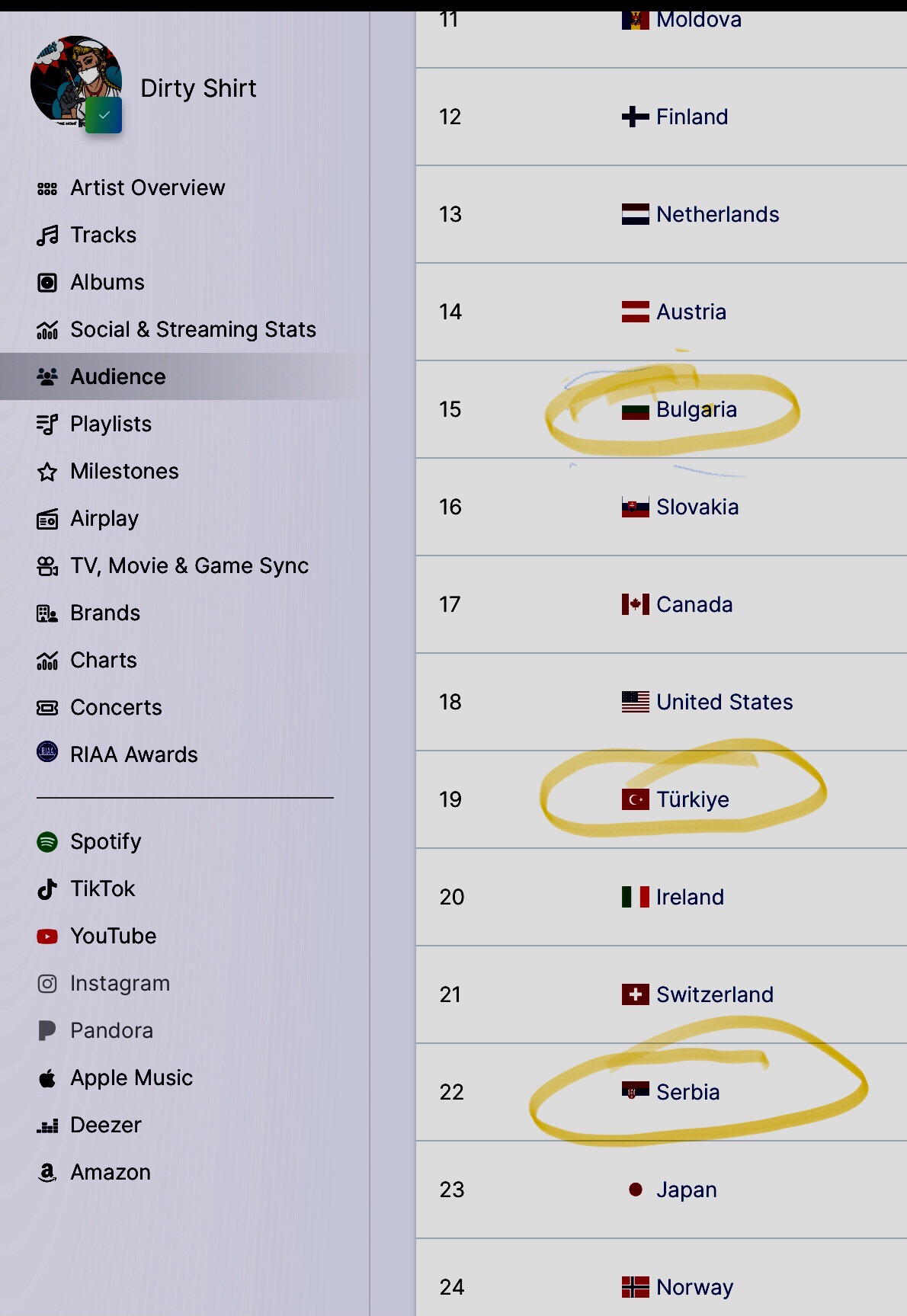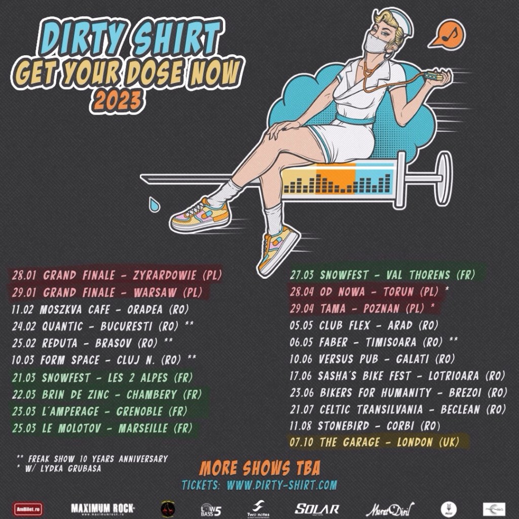 Countries where Dirty Shirt had audience but no concerts in 2023 include Bulgaria, Türkiye and Serbia.
