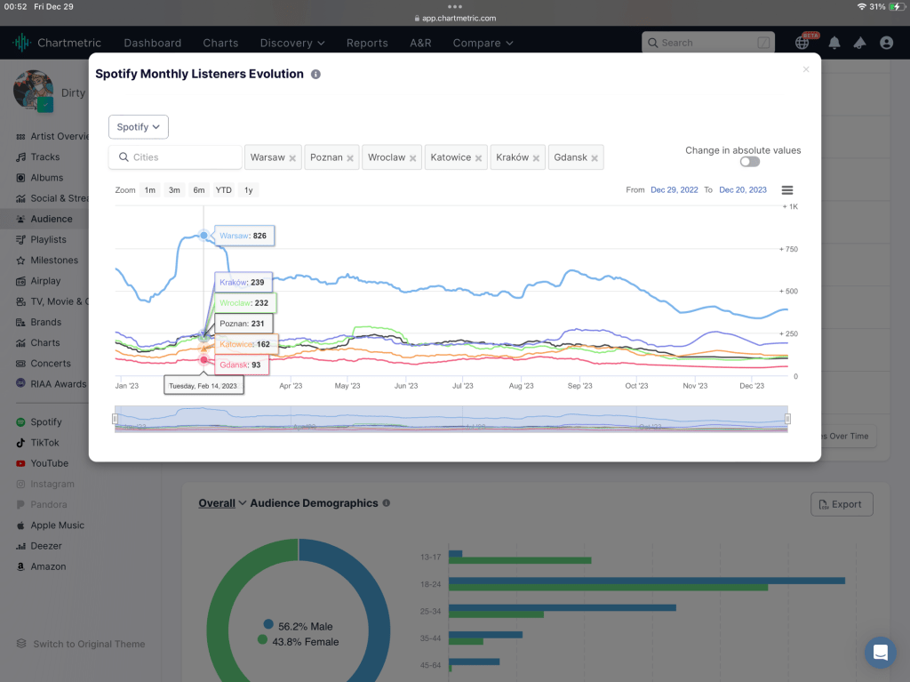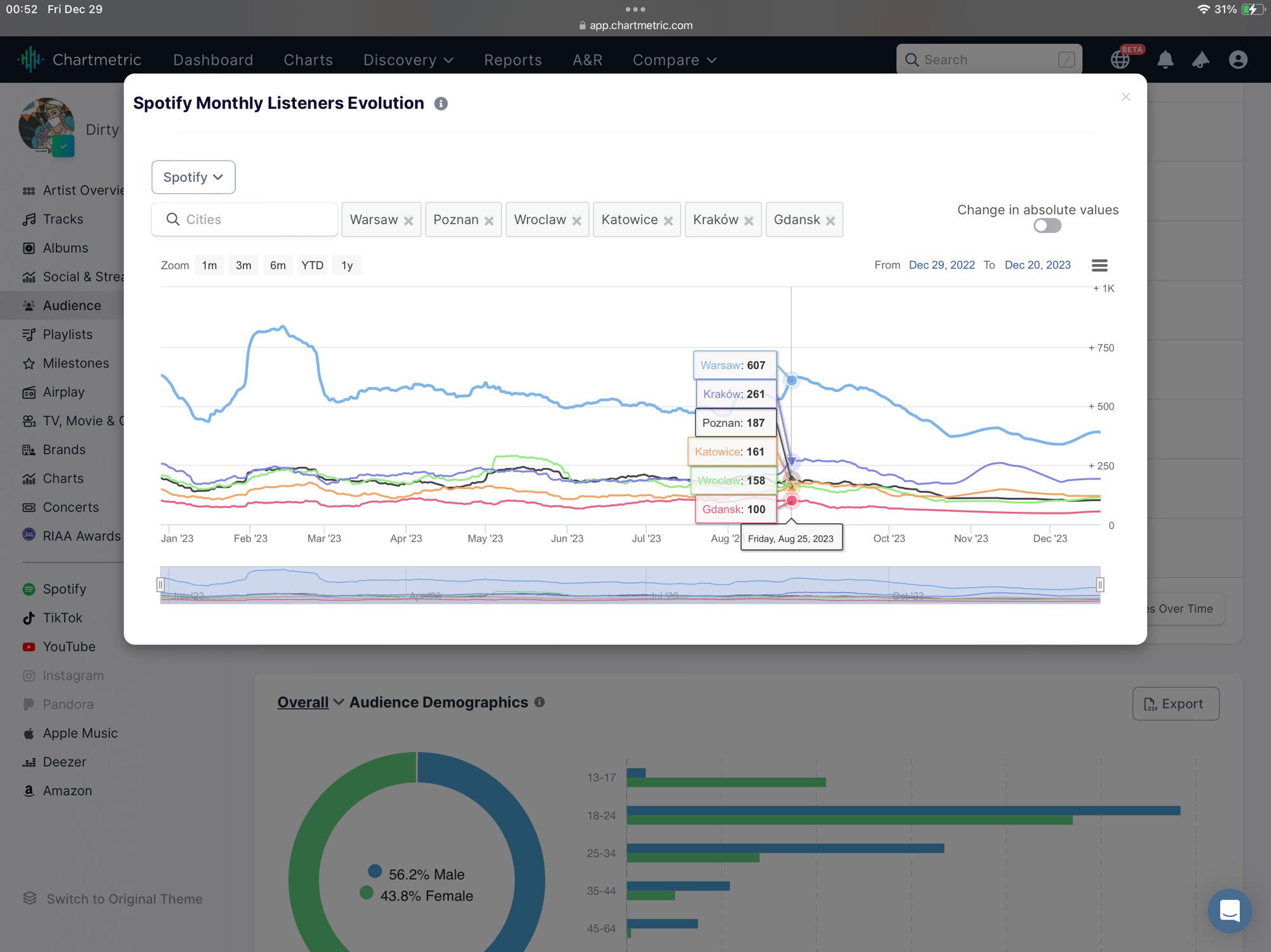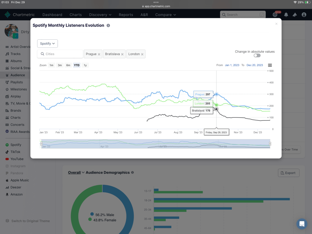 My services are available to artists and their teams. They include streaming & social media data insights, airplay monitoring and writing (bio, press releases etc.). Select the CONTACT button.