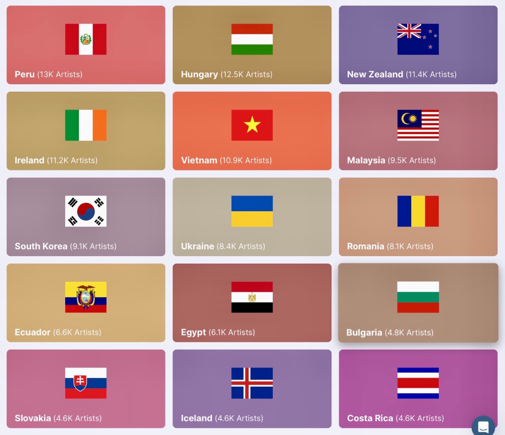 With 8.1k artists tracked, Romania ranks 45th globally in the list of countries pooled by Chartmetric.