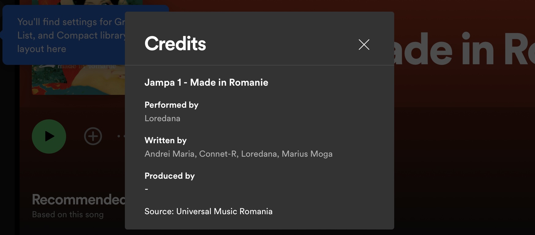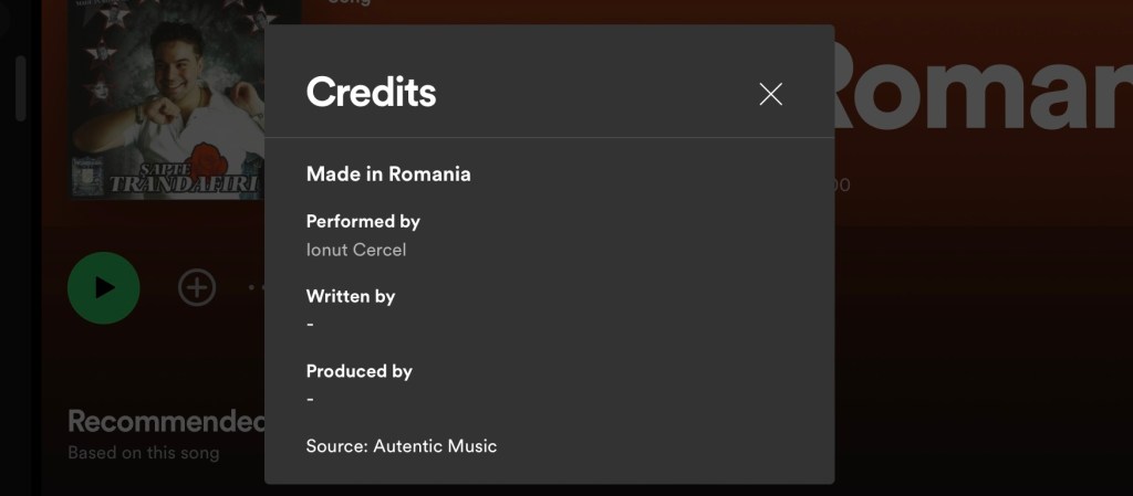 O problemă – des întâlnită în toată industria – e că label-ul lui Ionuț nu a declarat compozitorii la publicarea piesei pe platforme, după cum se vede in poza de mai jos. Păcat, pentru că Ionuț practic a adaugat câteva părți piesei care l-ar fi pus, posibil (după negocieri cu autorii originali pentru noua variantă), pe lista compozitorilor piesei pentru versiunea lui (acele “dumla dumla” si “iala iala” care au facut piesa iubita in Turcia, si de acolo la Inter Milano).