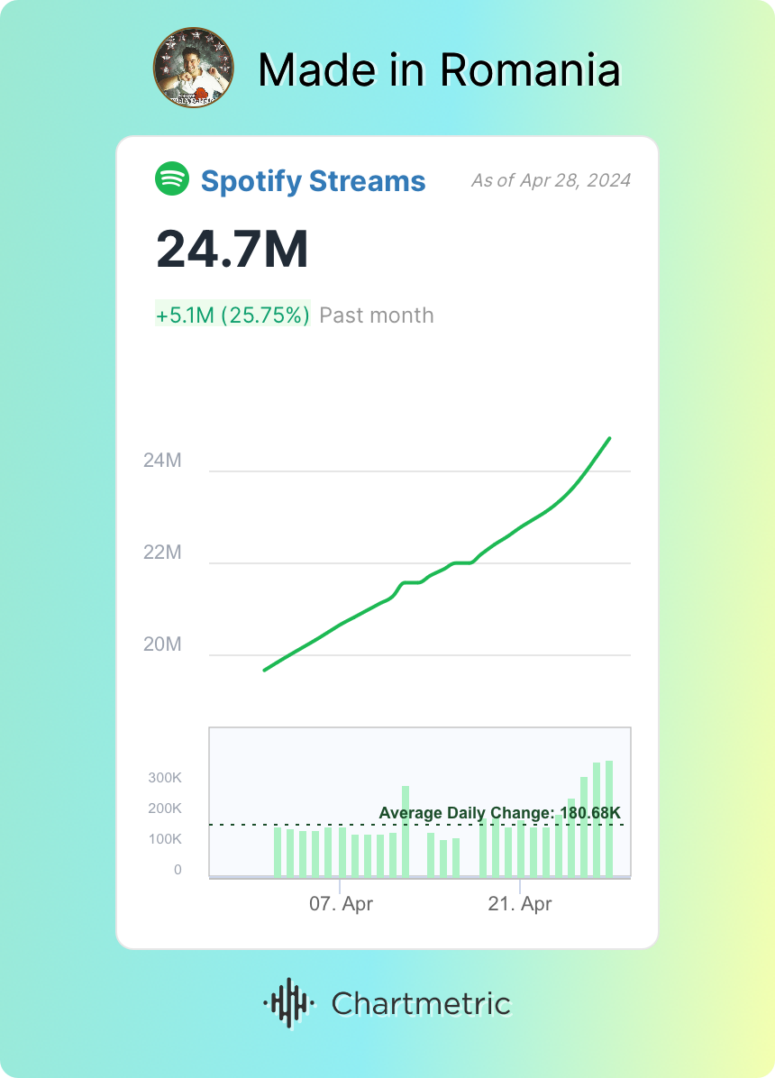 Cu peste 27 milioane de streams pe Spotify la sfârșit de aprilie 2024 (încasări posibile de aproximativ $100 mii) si 50 milioane vizualizări pe YouTube (= posibil $35 mii), apoi TikTok (de unde a pornit actuala nebunie) și restul platformelor, sume importante au intrat de-a lungul anilor și ar trebui să mai ajungă curând în conturile de artist ale lui Ionuț Cercel.