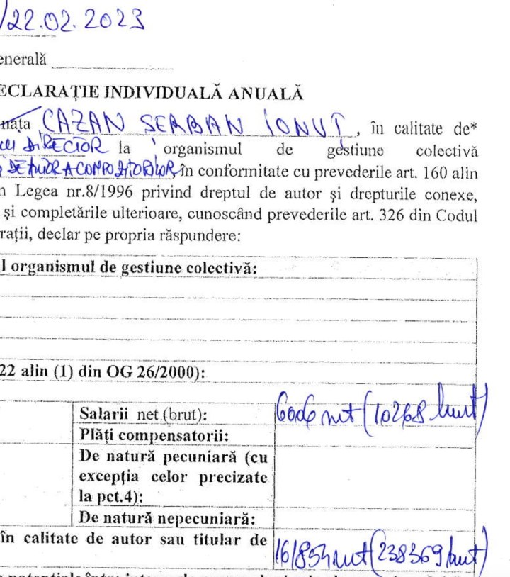 Let’s compare the annual earnings in 2023 of top Romanian composers with the minimum consumption basket for a decent living, estimated at approximately USD $850 per month or $10,200 annually according to a quick Google search. The figures mentioned below represent gross revenue; the after-tax income can be viewed in the images provided.