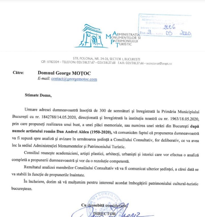 Strada care va purta numele Dan Andrei Aldea, ar trebui sa fie o strada reprezentativa, poate chiar un bulevard.