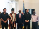 Buzdugan (first left) and Morar (second right) offering apologies to Congolese diplomats in Bucharest – source: RadioZu.ro